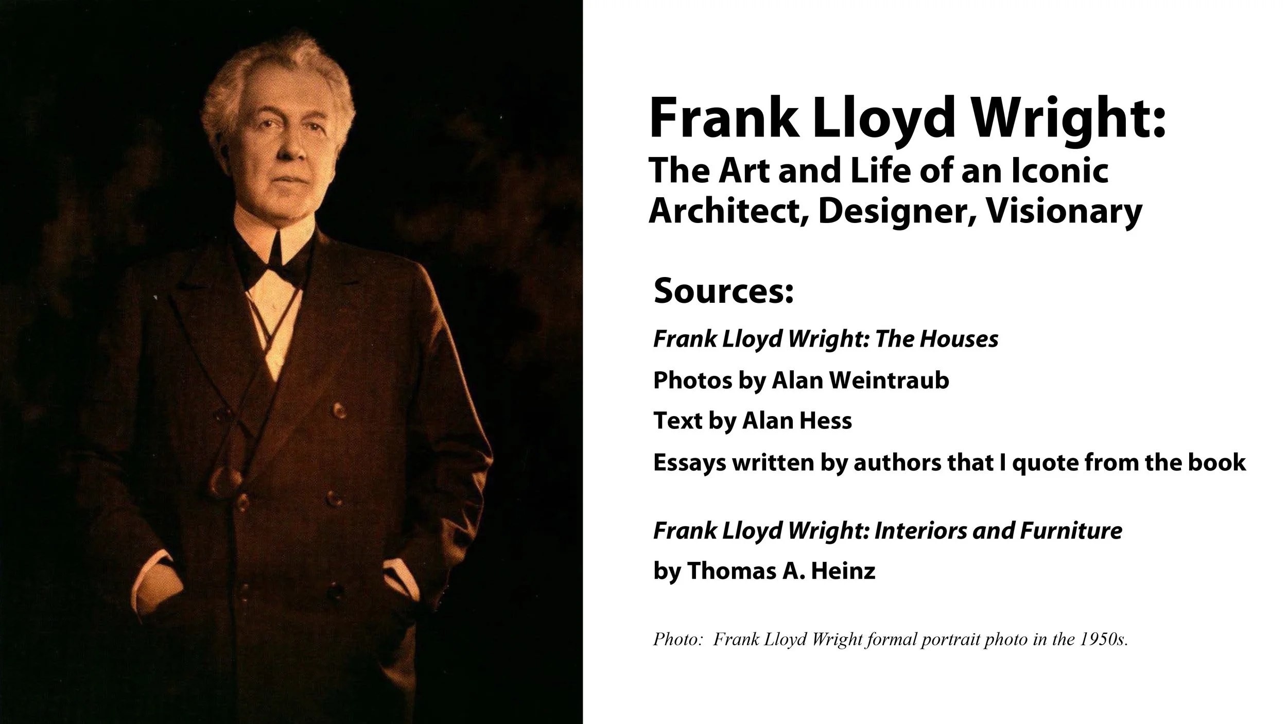 Frank Lloyd Wright was a pioneer in American architecture. In addition to being an architect, he was also a designer and at heart, a fine artist. He breathtakingly created entirely new types of architecture. To wit: Wright designed 12 of the Architectural Record’s 100 most important buildings of the 21st century. Whether he was designing a house or the furniture for that house, Wright’s designs were always aligned with cultural values. In NYC, he is best known for his groundbreaking design of the Solomon R. Guggenheim Museum. In this lecture, we will review his life, considering both his impact and his legacy in shaping the future of living spaces.