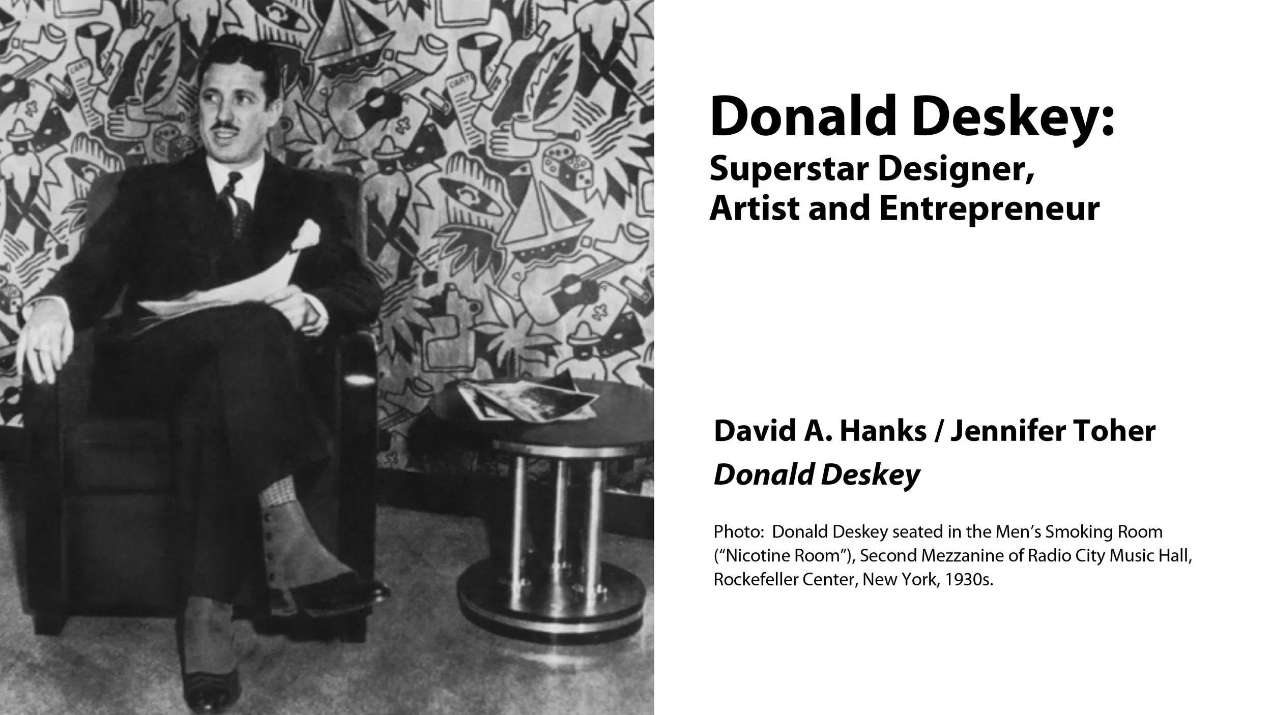 Donald Deskey is one of America’s most famous Modern designers. With Paul Frankl, Deskey established the American Art Deco “streamlined modern” style. He designed apartments for high society such as the Rockefellers, but arguably his most important commission was his interior design of the Palace of American Art Deco at Radio City Music Hall. The fact is, Deskey designed just about everything. He also owned his own furniture company Deskey-Vollmer for which he designed a limited number of pieces. In my lecture, I’ll trace his sources of inspiration and his creative thinking for his projects.